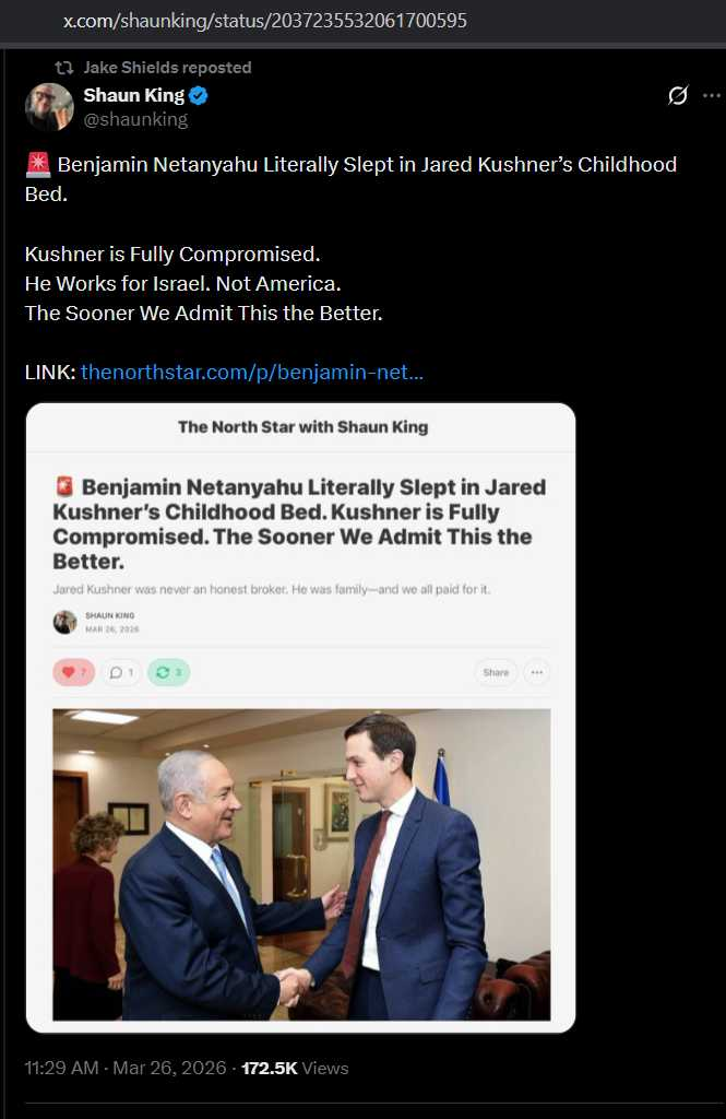 "There SHOUD BE a LOT MORE PUSHBACK that President TRUMP has selected as HIS Iran WAR 'BOARD OF PEACE' 'negotiators' two BLATANTLY RACIST, BLATANTLY ZIONIST, BLATANTLY GENOCIDAL, BLATANTLY WAR-PIGS 'DUAL CITIZENS' ISRAELI/ 'american' JEWS!" https://x.com/tantopress/status/2042901583235776811
