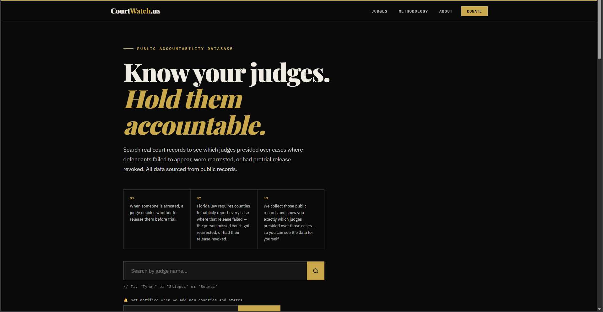 "I built CourtWatch.us — a free public database for American citizens who deserve safer communities.