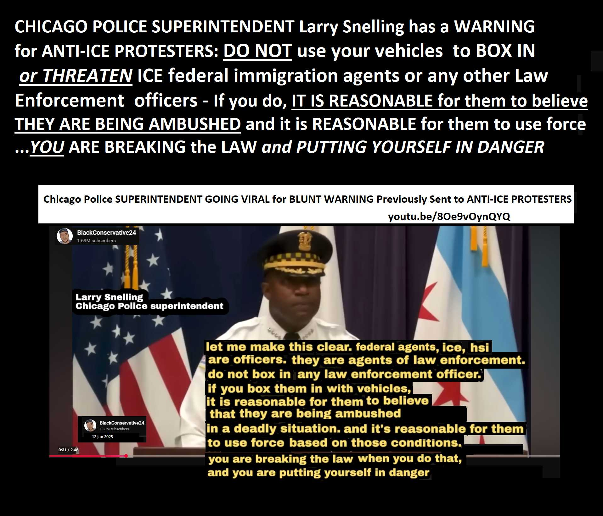 "DO NOT BOX IN ANY law enforcement officer - YOU ARE BREAKING THE LAW when YOU do, and YOU are PUTTING YOURSELF in danger."