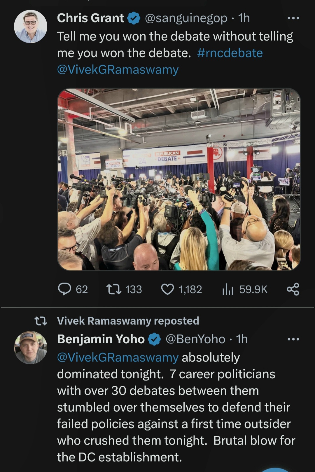 Ho-reeeee fuk, Vivek FTW, absolutely murdered the career politicians in their own sandbox, on live TV.
